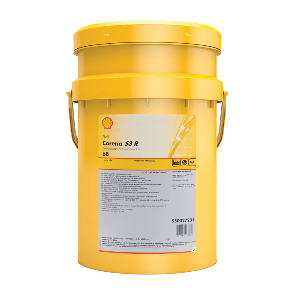 Shell Corena S3 R68 is a premium quality air compressor oil designed to deliver high performance lubrication of rotary sliding vane and screw air compressors.
